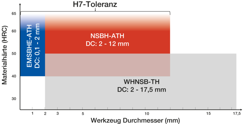 Als einer der führenden Präzisionswerkzeughersteller arbeiten wir kontinuierlich an Lösungen, um die Prozesssicherheit zu erhöhen und durch Optimierungen die Produktionseffizienz zu steigern. Auf dieser Seite präsentieren wir unsere Technologielösungen und VHM-Produkte zur Fertigung von Bohrungen mit H7-Toleranz, in gehärteten Stählen bis zu 60 HRC.