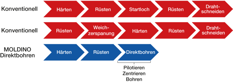 Verglichen zum Erodieren als konventionellem Fertigungsprozess, bieten wir mit unserer innovativen Fertigungslösung „Direktbohren“ einige Vorteile. Weitere Ausführungen und Anwendungsbeispiele sowie Informationen zu unserem Produkt-Portfolio finden Sie auf der folgenden Seite.