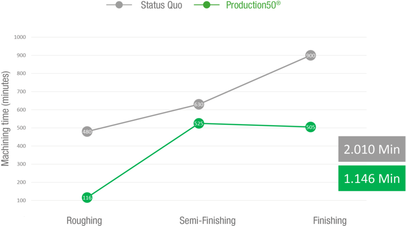 At MOLDINO we always follow the Production50 method, which was specifically developed to optimize milling processes. This involves analyzing the existing milling processes to gain new insights into the entire manufacturing process.