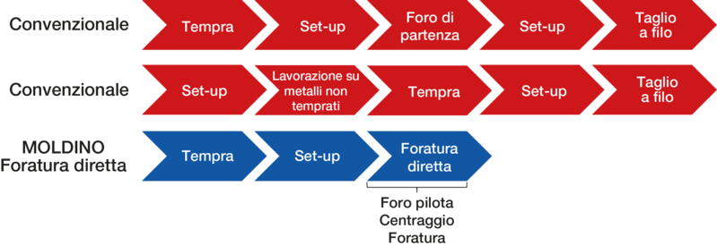 Rispetto ai processi di produzione convenzionali, come l’elettroerosione (EDM), la nostra innovativa soluzione di lavorazione “a foratura diretta” offre numerosi vantaggi. Nelle pagine seguenti troverete ulteriori dettagli, esempi di applicazione e informazioni sul nostro portafoglio prodotti.