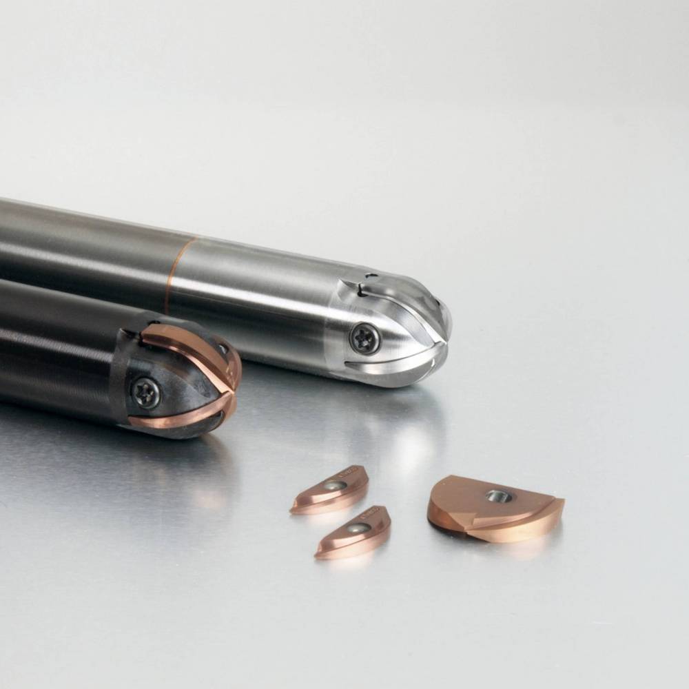 Fresa esférica com 4 arestas de corte, particularmente indicada para operações de semiacabamento e acabamento.
