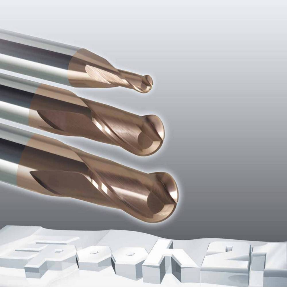 Fresa esférica para fresagem direta a alta velocidade em aços endurecidos.