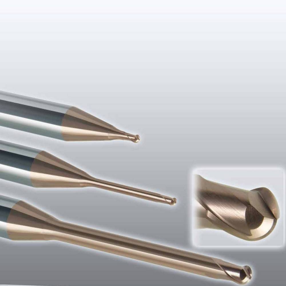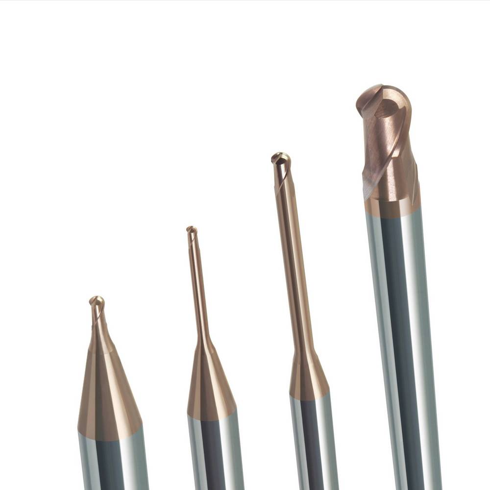 Fresa esférica com evacuação eficiente de aparas, reduzindo lascagem.