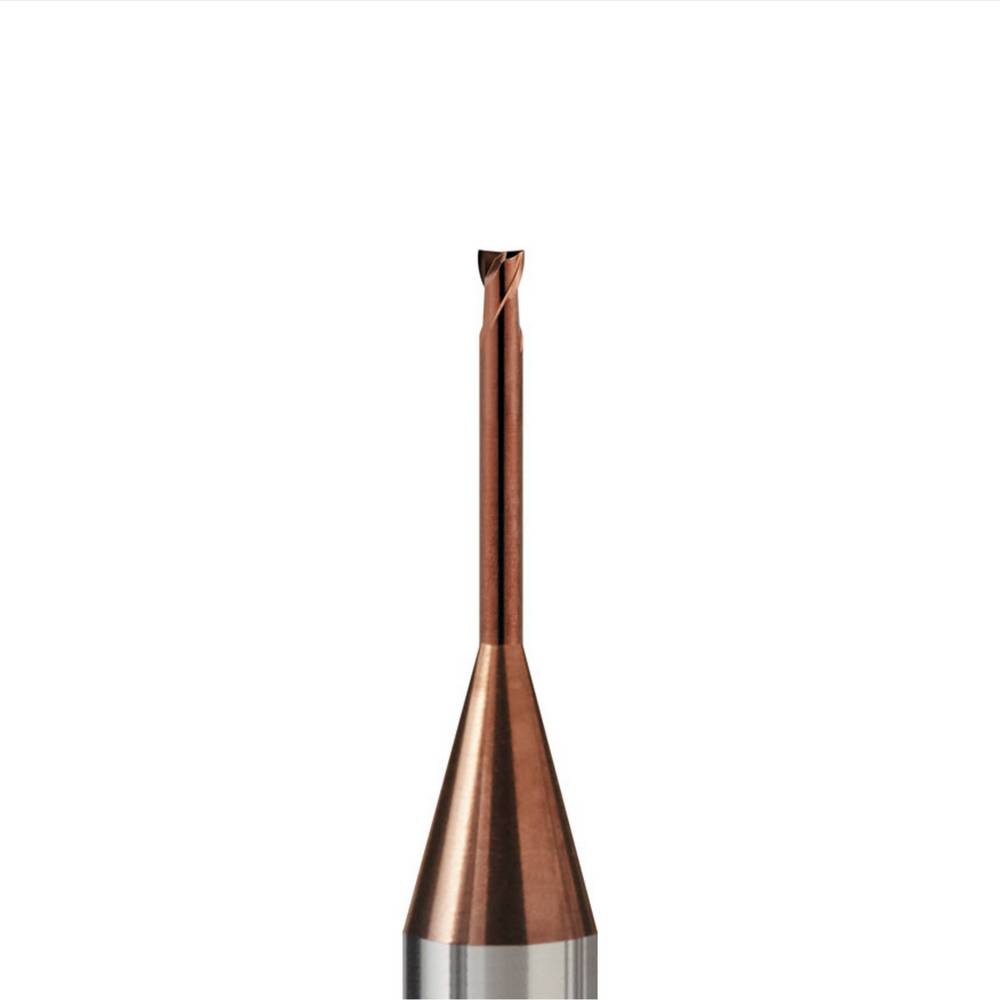Fresa de topo com raio e 2 navalhas para fresagem profunda de aços endurecidos.