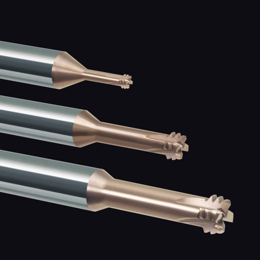 Fresa para roscas tipo G em aço endurecido, com ou sem furo piloto.