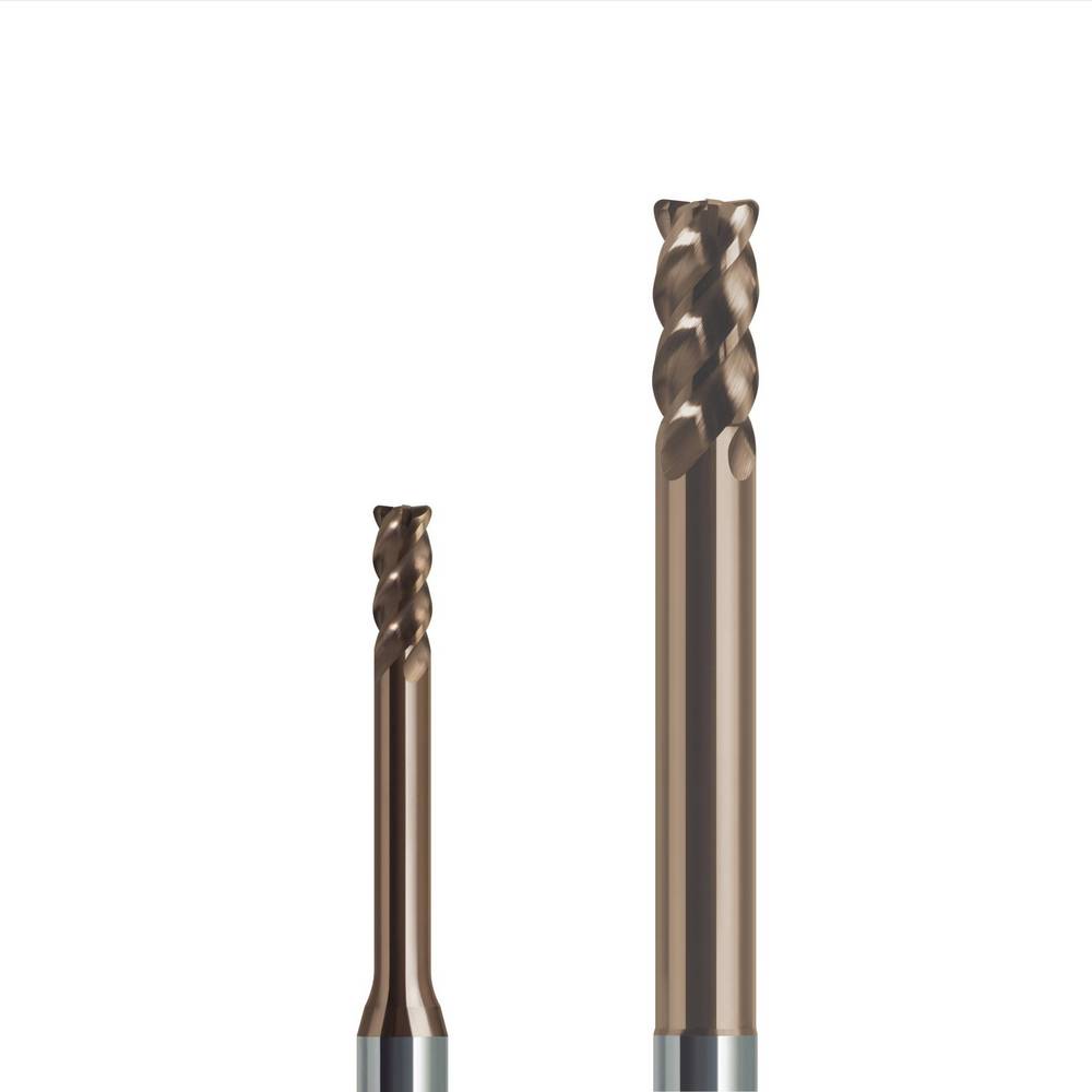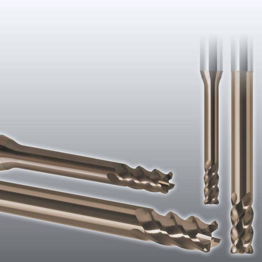 Fresa com haste longa e raio de canto para aços altamente endurecidos.