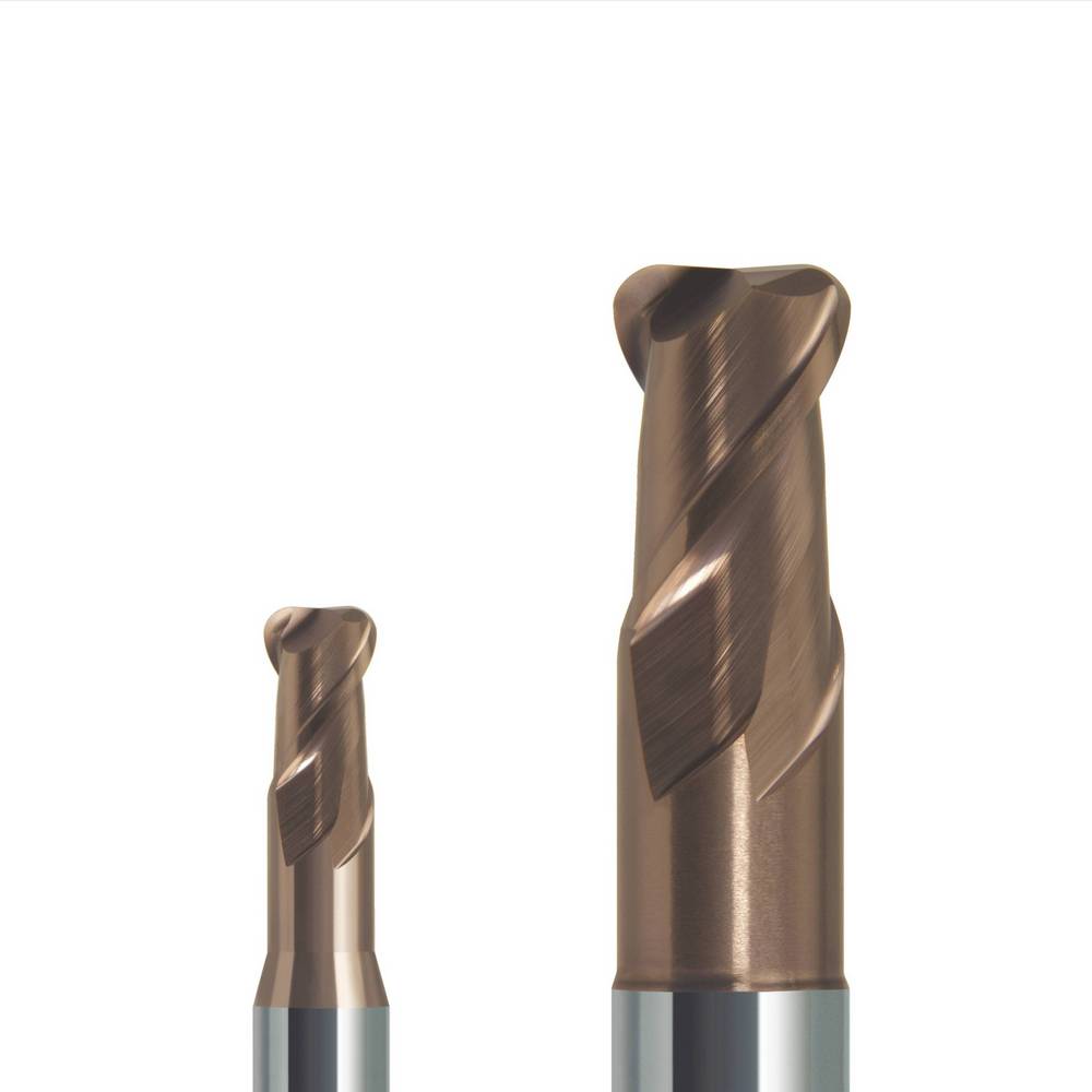 Fresa esférica de 2 navalhas para fresagem a alto avanço.