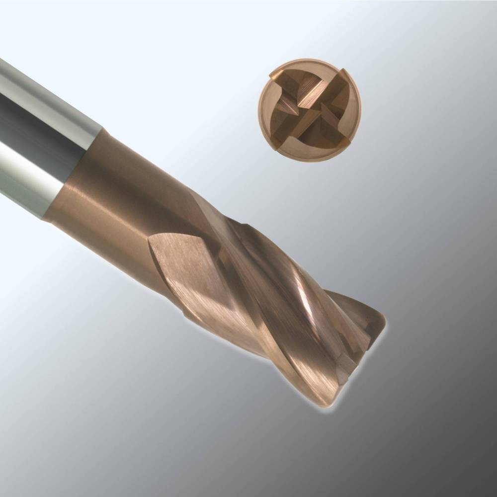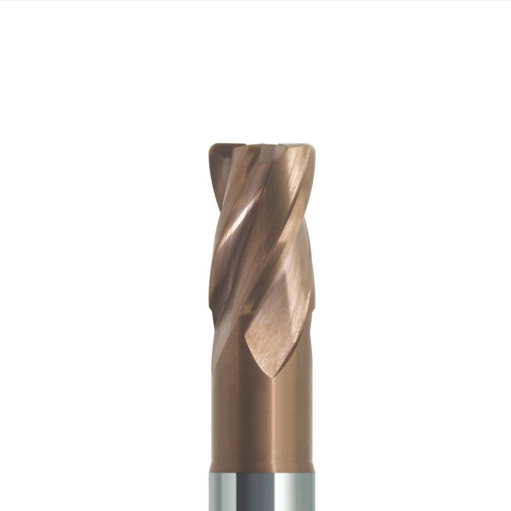 Fresa de topo com raio de 4 navalhas para fresagem a alto avanço.