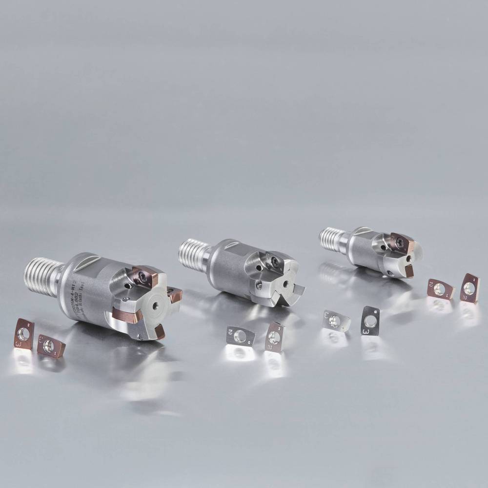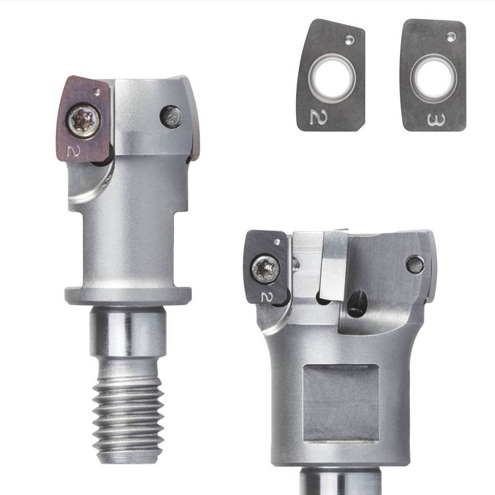 Ferramenta de acabamento de alta eficiência com geometria de barril e pastilhas intercambiáveis.