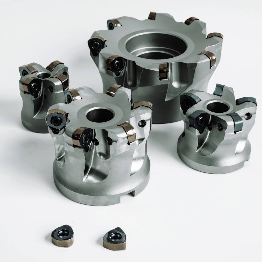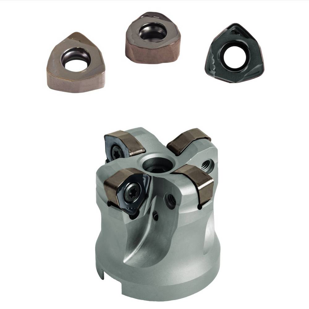Fresa de alto avanço com 6 arestas por pastilha para máxima remoção de material.